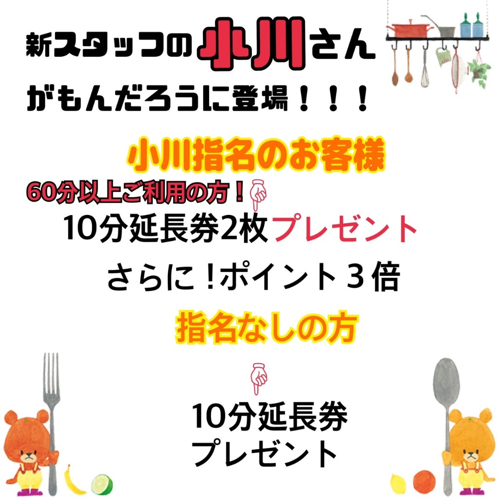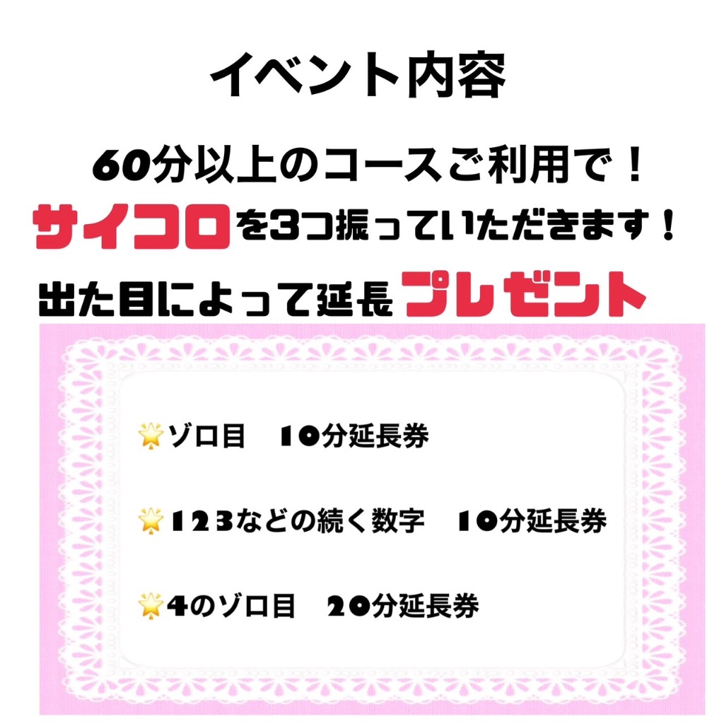 指名なしでのご利用で、10分延長券1枚プレゼント!