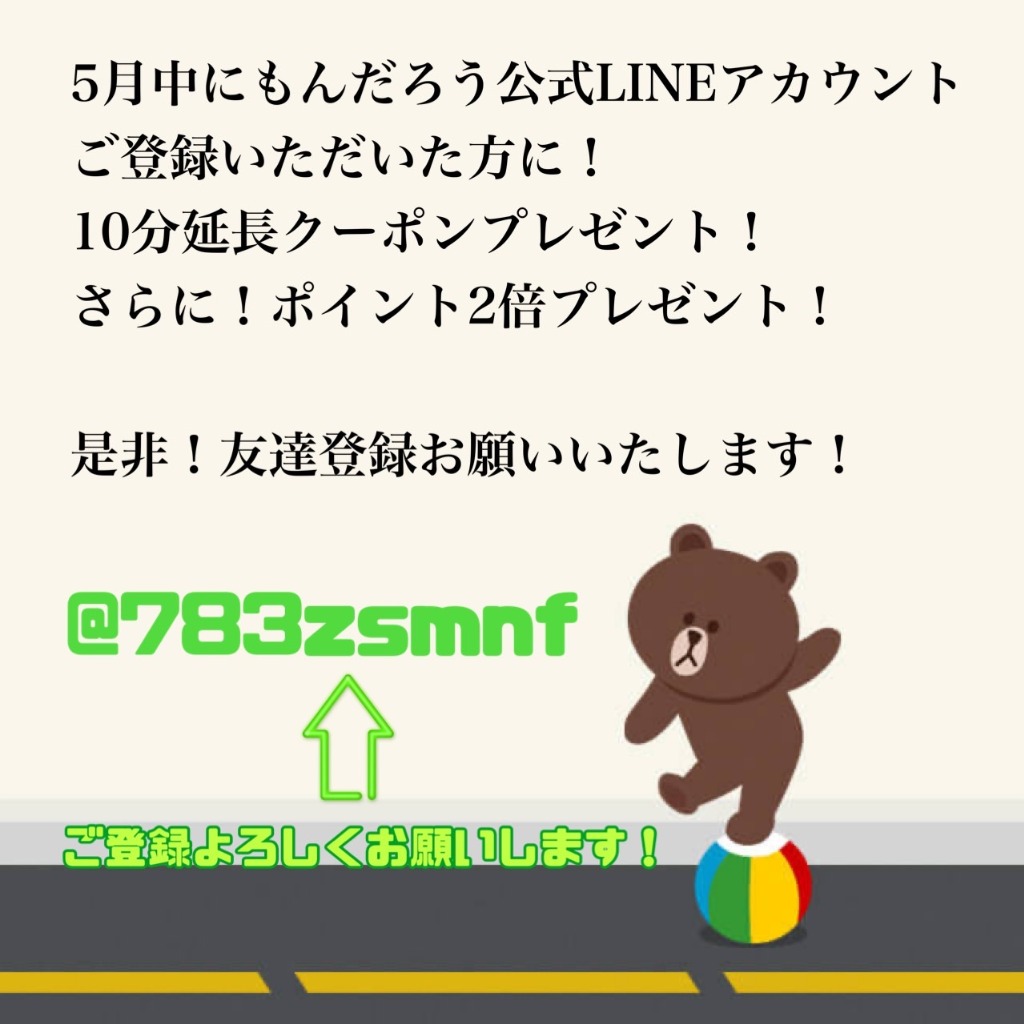 ①すでにLINE公式アカウントにご登録いただいた方に10分延長券を配布いたします!
